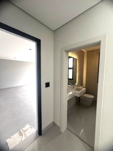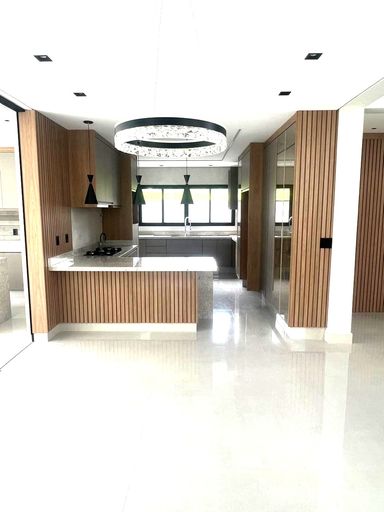 Sala de Home/reversível para suíte (fechada com porta deslizante ripada e com painel ripado para tv -com porta invisível para wc)