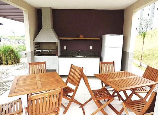 Lazer com piscina, academia, salão de festas, playground e portaria 24 horas.